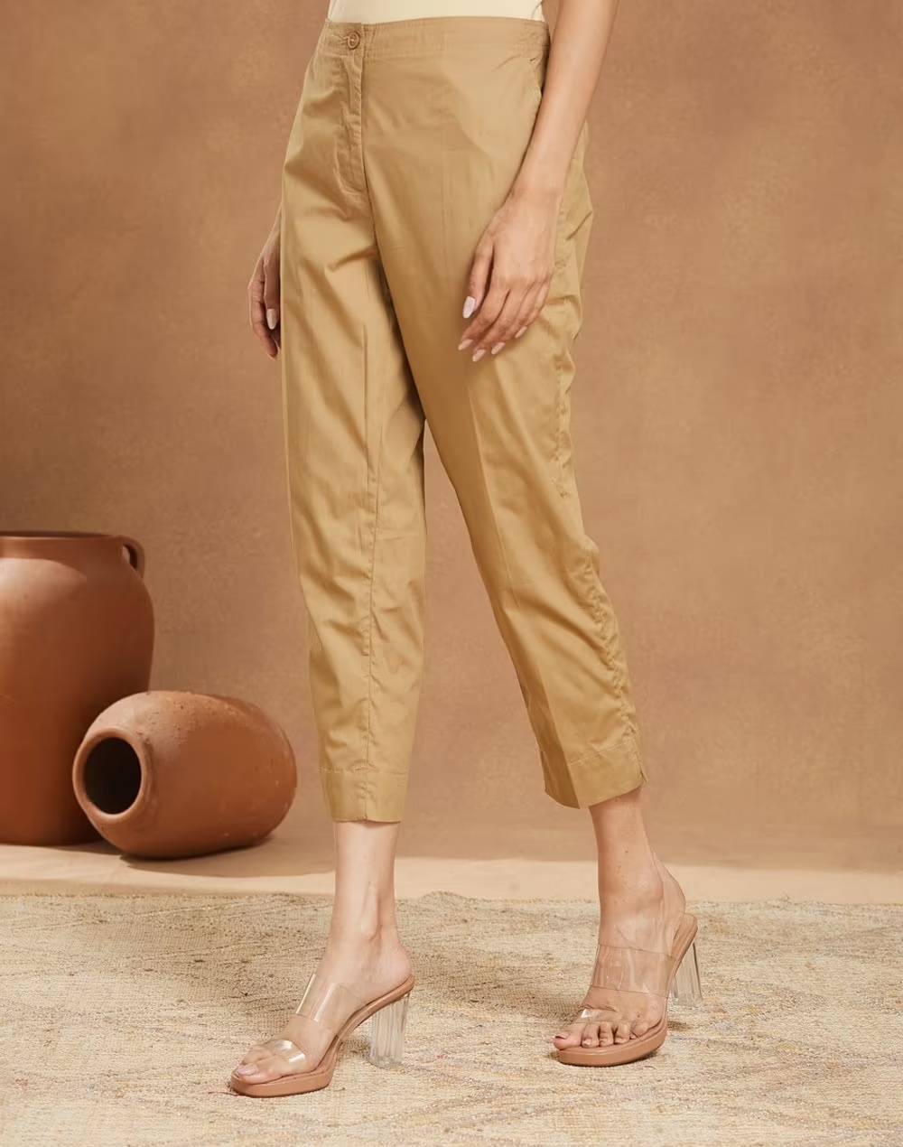 Brown Cotton Casual Pant